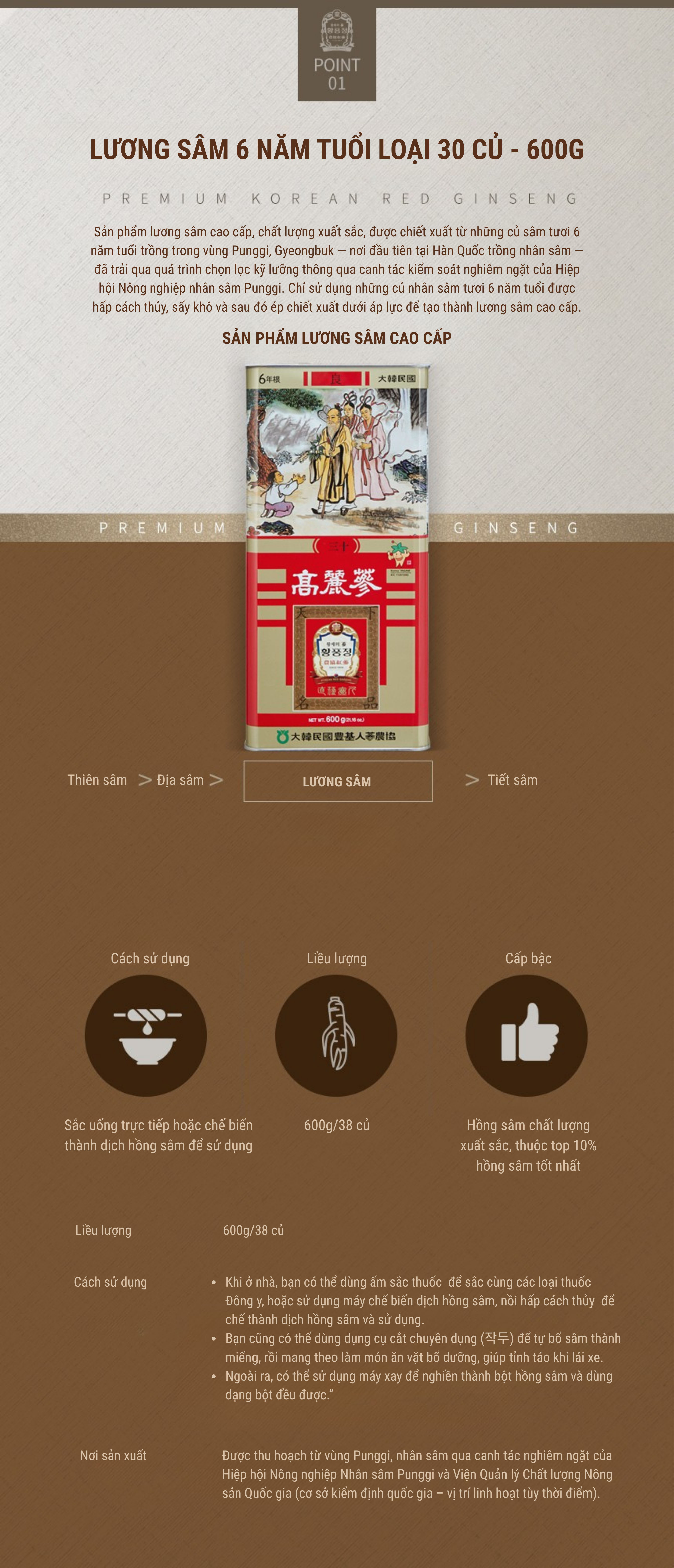 Lương sâm là loại hồng sâm có giá trị dinh dưỡng phù hợp để sử dụng hàng ngày, hỗ trợ tăng cường miễn dịch, chống lão hóa, bồi bổ sức khỏe và cải thiện trí nhớ.